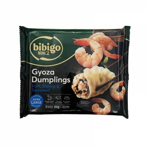 Дамплинги — горячий ароматный обед за несколько минут!; Похожее на пельмени азиатское блюдо создается по специальному рецепту, благодаря чему приготовление замороженного полуфабриката отнимает минимум времени, а вкус оставляет множество приятных эмоций! В сочной начинке на основе порубленной свинины присутствуют гармонично дополняющие вкус ингредиенты — капуста, лук, чеснок, соевый творог тофу, а также приправы, придающие блюду легкую остроту, приятный аромат. Все это обернуто в тончайшее тесто, которое в полной мере позволяет насладиться вкусом начинки.; ; Как приготовить корейский вариант пельменей?; Замороженный полуфабрикат достаточно вынуть из морозилки — и можно начинать готовить любым из трех удобных вам способов: пожарить, отварить или приготовить в микроволновой печи. Тесто во время приготовления у корейского блюда не разваривается и не рвется, а поджаренное — приятно хрустит. В отличие от привычных нам пельменей, вкус у дамплингов очень насыщенный, чуть сладковатый, пряный, количество начинки — очень большое. Корейское блюдо лучше всего подавать с соевым соусом, терияки, кисло-сладкими соусами. Дополнить подачу можно салатом из свежих овощей и зеленью.; Причины купить королевские дамплинги со свининой и овощами Bibigo; Ароматный горячий обед в лучших традициях паназиатской кухни за несколько минут; Гармоничное сочетание мяса, овощей, устричного соуса, тонкого теста; Отличная возможность внести разнообразие в каждодневное меню